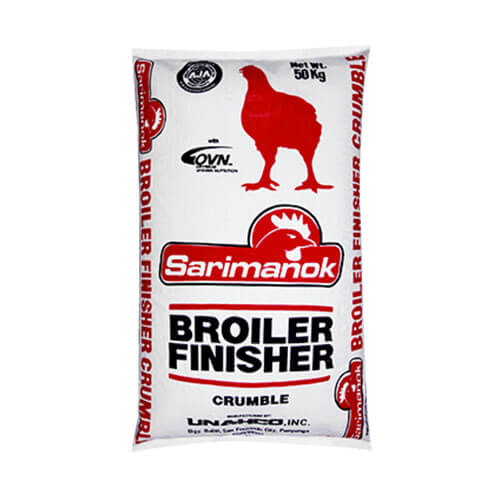 Sarimanok Broiler Finisher Crumble is specifically formulated for chickens aged 27 days until harvest. It has key formula technology such as Optimum Vitamin Nutrition (OVN) that helps increase broiler chickens’ energy for faster growth and harvest